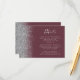 The left-hand edge of this elegant modern wedding details enclosure card features a silver faux glitter design. The customisable text combines pale silver grey handwriting, copperplate and italic fonts on a burgundy background. The reverse side features a matching burgundy and silver glitter design.