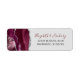 The left-hand edge of this elegant modern wedding invitation return address label features a burgundy watercolor agate border trimmed with silver faux glitter. The customisable text combines burgundy and charcoal grey handwriting and copperplate fonts on a light grey background.