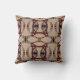 Burgundy Slate Blue on Tan Large Mosaic Tile Motif Cushion