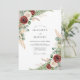 This elegant design showcases a rich palette of burgundy and ivory roses paired with verdant foliage. Silver dollar eucalyptus leaves and textured ferns create a lush botanical arrangement. Subtle bronze accents complement the deep red and cream tones, providing a sophisticated atmosphere for a seasonal event.