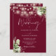 Burgundy String Lights Floral QR Code Wedding Invitation