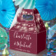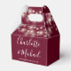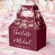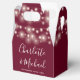Elegant wedding favour box featuring pretty string lights, chic signature script names and special date on a burgundy background. You can personalise with your own thank you message on the reverse. A perfect way to say thank you to your guests! Designed by Thisisnotme©