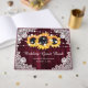 Complement your burgundy rustic wedding party with this burgundy and sunflower wedding guest book featuring sunflower flowers and white floral lace on a rustic wood background. Matching items available.