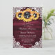 Burgundy Sunflower Wood String Lights Wedding Invitation