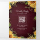 Burgundy Sunflowers Mason Jar QR Code Wedding Tri-Fold Invitation