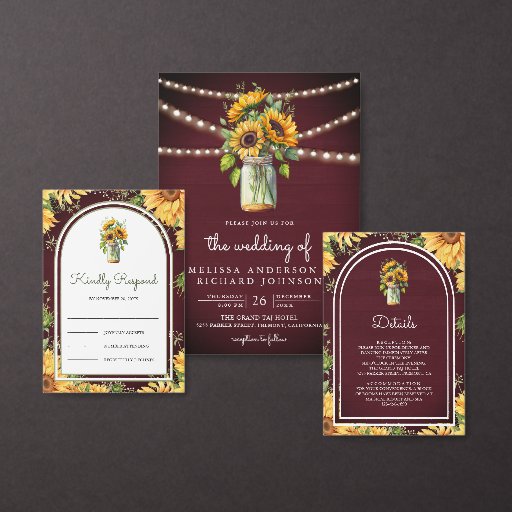 Burgundy Sunflowers Mason Jar WeddingDesigned by Shabbir D