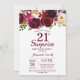 Burgundy Surprise Floral 21st Birthday Party Invitation