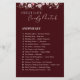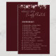 Complete your bridal shower game set with this elegant Sweet Love Candy Match Answer Key. Designed in a rich burgundy palette with soft floral accents, this matching answer sheet makes hosting easy and stress-free. Perfect for bridal showers, engagement parties, bachelorette celebrations, and wedding events. Coordinates beautifully with the Candy Match game card and helps hosts quickly score results. Ideal for modern, romantic, and floral wedding themes. Printed professionally on premium paper for a polished party setup.