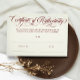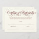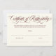 Elegant certificate of authenticity in off-white and burgundy with a swirly calligraphy script.