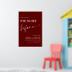 Set the stage for your rehearsal dinner with our Burgundy The Night Before Rehearsal Welcome Sign. This elegant sign combines deep and rich burgundy tones with clear, crisp lettering in white creating a sophisticated ambiance for your pre-wedding celebration.