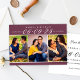 A rich and dramatic save the date featuring a deep burgundy banner with elegant white date numerals and names, above a three-photo collage showcasing your favourite engagement photos. The jewel-toned wine palette creates a sophisticated, romantic aesthetic perfect for fall, winter, or formal wedding styles. The coordinating back panel includes space for wedding details and your website. All text and photos are fully customisable.