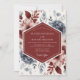 Deep, moody blooms in rich burgundy and muted blues create an enchanting atmosphere. This design evokes a sense of twilight romance with its lush, botanical elements. A sophisticated choice for a captivating celebration.