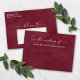 Watercolor in Burgundy Red A7 5x7 inch Wedding Envelopes (other sizes to choose from). This modern wedding envelope design has a beautiful watercolor texture, and bold colours that are perfect for winter. Shown in the Burgundy colorway. With a gorgeous signature script font with tails, the ethereal watercolor wedding collection is sure to make your wedding memorable and beautiful!