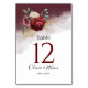 This beautiful table number card features a corner design with an elegant cluster of roses in white and rich burgundy tones on a marsala watercolor gradient dispersing into the white background. A touch of gold glitter confetti embellishes this luxurious design. You can enter each table number separately with the customise option. This is part of an exquisite wedding collection with additional matching items.