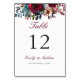 Elegant Wedding Table Number Cards featuring a burgundy red floral watercolor design and classic style text in grey and red can be fully-personalised. Matching Wedding Collection in the Little Bayleigh Store!