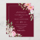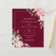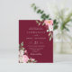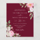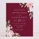 An elegant floral budget wedding invitation featuring blush pink watercolor flowers with modern handwritten calligraphy on a burgundy red background.