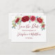 These save the date cards feature burgundy watercolor flowers. They are part of a collection which includes a full range of matching wedding invitations and stationery such as reply cards, information cards, address labels, stickers, programs and much more. Please visit the collection pages in our store to see the full range of items that you can personalise for your wedding.