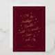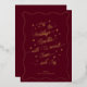 A modern burgundy holiday card with a wavy gold border and shimmering lettering. This non photo holiday card combines elegance and warmth, making it a timeless choice for sending Christmas greetings. The back features pre-written wishes with “simple joys” or space to add your own personal message. Perfect for sharing holiday cheer in a rich and festive style.
