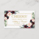 Watercolor Burgundy Blue Floral and Gold Wedding Reception Drink Ticket Card - Gold Script, Blue Back