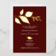 Modern yet elegant. This burgundy wedding rehearsal dinner invitation frames your celebration details with a border of gold foil leaves over a solid maroon background. Your event details are set in an simple sans serif and script type. The colours can be customised to suit your wedding theme. To see more simple wedding invitation suites like this visit Do Tell A Belle on Zazzle at www.zazzle.com/dotellabelle