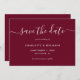 Elegant burgundy wedding save the date cards with a modern script font. Matching items available.