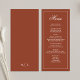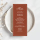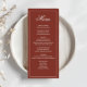 Complete your wedding table setting with this wedding menu card, featuring simple elegant calligraphy in a classic formal style. Designed in a stylish rust burgundy colour, this reception dinner template adds warmth and sophistication to your rehearsal party table. The traditional typography design highlights the bride and groom’s monogram with classy ampersand initials, creating a personalised touch. With a clean, basic, minimal aesthetic, this menu is perfect for an elegant celebration