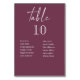 Burgundy Wedding Table Numbers With Guest Names