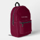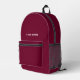 Easily personalise this simple and cool backpack adding your name or custom text. A cool and modern design in dark burgundy cherry wine marsala red and white featuring clear sans serif font, for a modern, professional and edgy look, perfect as custom gift for college students, high school, kids. The backpack can be customised in any colour and any font. No minimum.