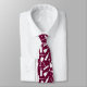 Wine themed tie featuring a white pattern of wine glasses, bottles and corkscrews on a burgundy red wine coloured background
