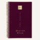 Burgundy Wine Shiny Gold Elegant Monogram Notebook