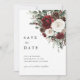 Burgundy Winter Floral Photo Back Wedding Save The Date