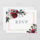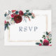 Burgundy Winter Roses Greenery Wedding RSVP Postcard