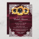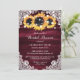 Burgundy Wood and Lace Sunflower Bridal Shower Invitation