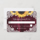 Romantic rustic sunflower wedding RSVP cards. Perfect card design to complement your burgundy rustic wedding party inspired by sunflower flowers. Matching items available.