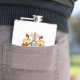 The flask itself is fine. It’s a cheap flask, obviously bought in bulk, however am prepared to overlook that. Given that it is a personalized item, I would have liked to have seen gift boxing instead of the generic packaging. Terrible printing, and/or quality. It’s a cheap, tacky vinyl. It is not cut straight and is also applied in a way that it is overhanging the bottom, causing the glue to catch on items and it will eventually roll and tear, damaging the wrap.