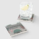 The coasters are gorgeous, a quality feel and heavy weight. They look like a precious archeological find. A rustic stone juxtaposed with a modern floral black and white print. I like the way the print goes slightly imperfect on the cut stone edges giving them a kind-of natural beauty.