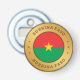 The Burkina Faso flag is inset into a rounded faux gold ring. The words "Burkina Faso" feature at the top and bottom of the design, and are of a pressed effect. The pair of three decorative stars across from each other, are also designed with a pressed effect.