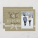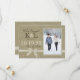 The look of burlap with a bow, photo announcement perfect for a save the date, engagement or any announcement. Customise fonts and text to suit your style.