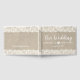 This rustic wedding guest book features a burlap look background bordered by delicate lace. Customise with your names, wedding date, and special quote on back. The perfect compliment to your rustic wedding decor.
