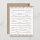 Our rustic burlap and lace fill-in-the-blank advice cards are a fun activity to have a wedding reception or bridal shower. You can change the heading wording if you would like by using Zazzle's "Personalise this template" tool. Be sure to check out our large selection of coordinating items by browsing the Burlap and Lace Wedding collection!