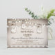 Elegant rustic burlap and white lace design rehearsal dinner invitation with string of lights and hanging mason jars.