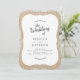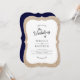 This trendy wedding invitation features a bracket shaped card with a white bracket box on a burlap background. The backside is a solid navy blue and can be changed to any colour by choosing customise.