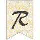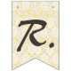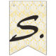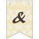 Rustic chic wedding bunting banner, with graphics of a burlap look and yellow and white lace. Big yellow sunflowers decorate five of the flags. The text Mr. & Mrs. decorates the lacy looking flags in the middle. Great for your wedding reception or rehearsal dinner.