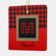 Burlap Buffalo Plaid Red Black Monogram Name Ceramic Ornament