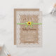 Have an elegantly country bridal shower with this invitation! Features a bright yellow sunflower, green gingham ribbon, white lace, and brown burlap texture background.