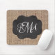 Burlap Chalkboard Look Triple Monogrammed Script Mouse Pad