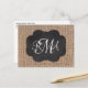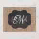Burlap Chalkboard Look Triple Monogrammed Script Postcard