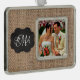 Burlap Chalkboard Look Triple Monogrammed Script Silver Plated Framed Ornament