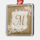 Burlap Country Lace Applique Rustic Fabric Print Pattern Monogram Initial Christmas Ornament Personalised