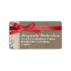 beautiful address labels with rustic burlap background, white lace with floral ornaments and printed red ribbon with bow. Best for weddings and before wedding parties!